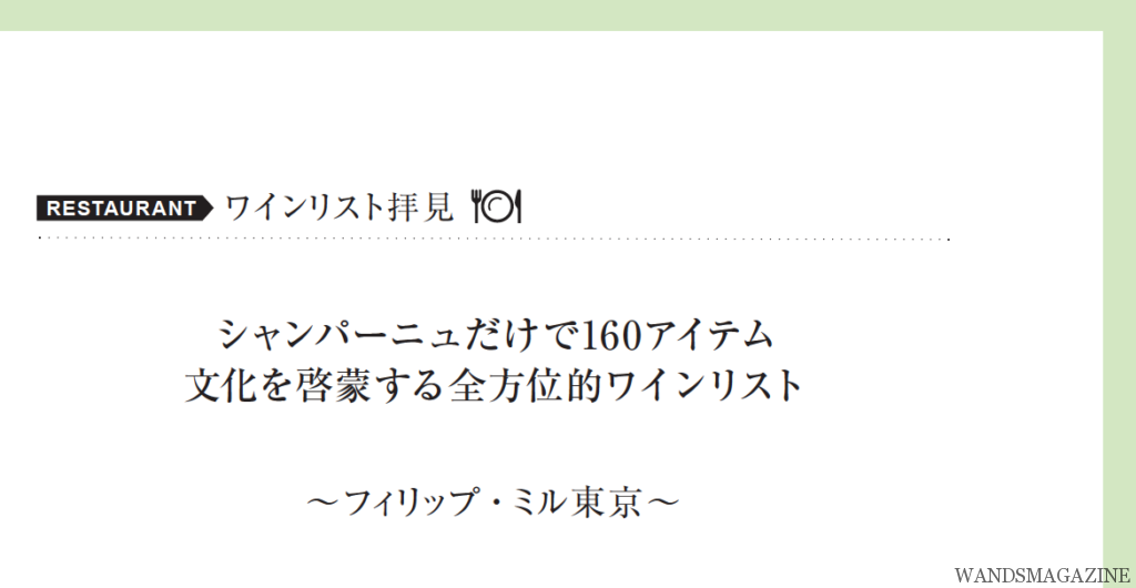 シャンパーニュだけで160アイテム 文化を啓蒙する全方位的ワインリスト ~フィリップ・ミル東京~