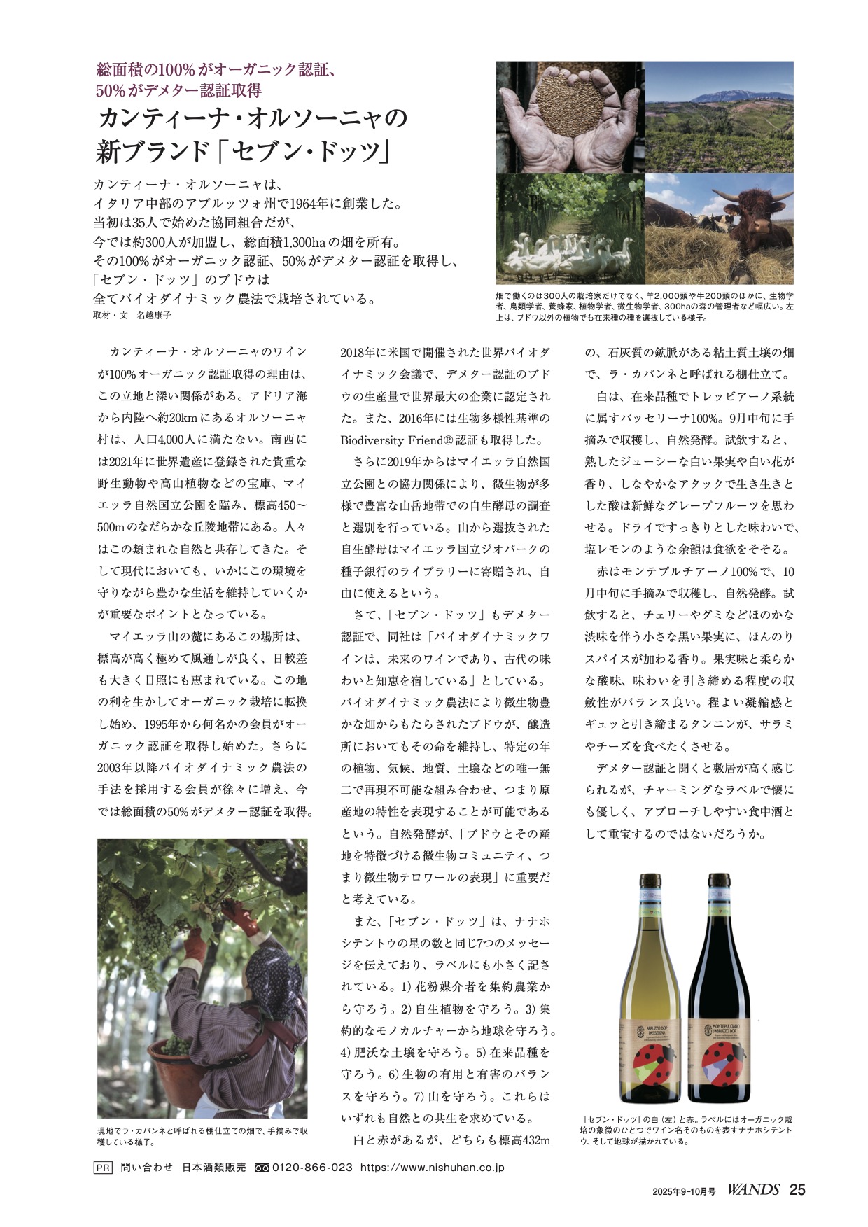 カンティーナ・オルソーニャは、イタリア中部のアブルッツォ州で1964年に創業した。当初は35人で始めた協同組合だが、今では約300人が加盟し、総面積1,300haの畑を所有。その100%がオーガニック認証、50%がデメター認証を取得し、「セブン・ドッツ」のブドウは全てバイオダイナミック農法で栽培されている。