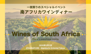 367年の歴史を持つ南アフリカワイン。その記念日である2月2日に、マンダリン オリエンタル 東京で壮大なワインの世界を体験できる一夜限りのスペシャルディナーイベントが開催される。 【南アフリカワイン スペシャルデ…詳細を見る -
